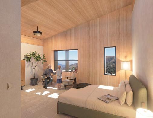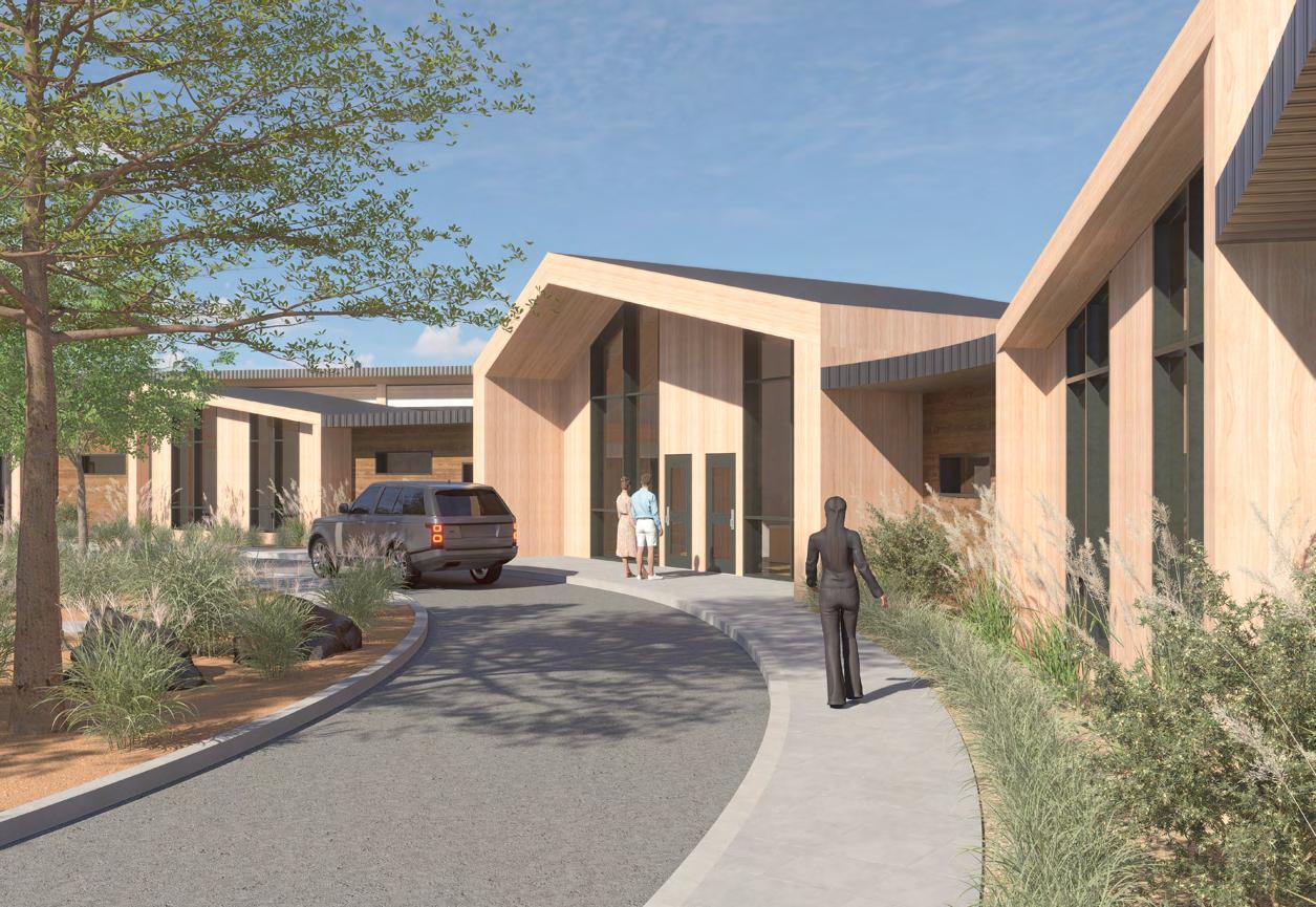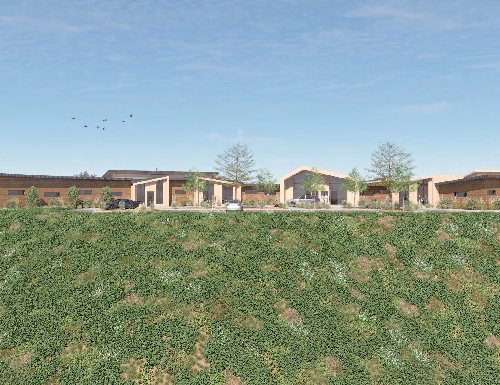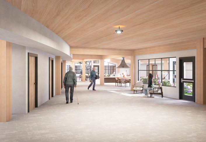 Memory Therapy Village is strategically designed to respond to its natural surroundings, with the north façade curving along the hillside and the south façade angled to maximize scenic views. The facility is divided into four modules, paired and connected by a central reception area. Each pair of modules shares a gardening space and features a single circuitous route, enhancing way finding and providing visual access throughout the space. At the heart of each module is a hearth, serving as a central gathering point that fosters a sense of home and community.