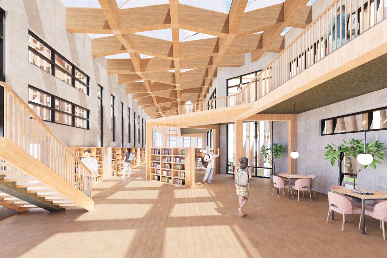 The Bridge Charter School is designed to mirror the journey of a business entrepreneur, fostering connections with students and guiding them toward success. Entrepreneurs thrive on taking risks and overcoming challenges to turn their ideas into reality. The school's architecture reflects this process, with the second level serving as a bridge between the first and third levels, symbolizing the connection and transition. The exterior courtyard furthers this concept, with pathways connecting various outdoor study spaces. Ultimately, this charter school provides a space for students to succeed, bridging them into the world of business entrepreneurship.