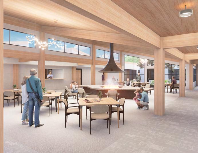The activity/dining area consist of a fireplace that serves as a central monument in which everything else revolves around, helping the care center resemble an important quality of “home”.