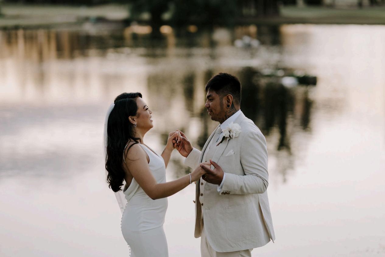 Exchange your vows in a beautiful outdoor setting with the backdrop of a tranquil lake, perfect for an intimate wedding.