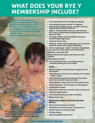 WHAT DOES YOUR RYE Y MEMBERSHIP INCLUDE? The Rye Y participates in the Nationwide Membership initiative which entitles Rye Y members to use hundreds of participating YMCA’s across the country! To view participating YMCAs visit: ymca.net/nationwidemembership