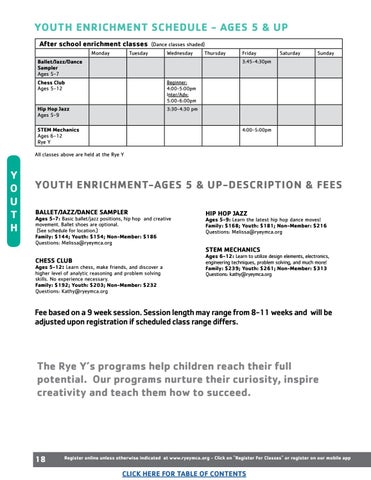 YOUTH ENRICHMENT SCHEDULE - AGES 5 & UP After school enrichment classes Monday