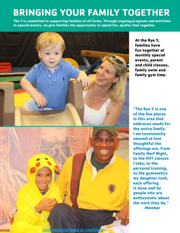 BRINGING YOUR FAMILY TOGETHER The Y is committed to supporting families of all forms. Through ongoing programs and activities to special events, we give families the opportunity to spend fun, quality time together.