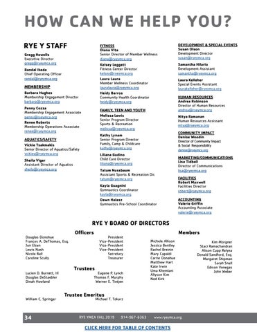 HOW CAN WE HELP YOU? RYE Y STAFF Gregg Howells Executive Director gregg@ryeymca.org Randal Ikeda Chief Operating Officer randal@ryeymca.org