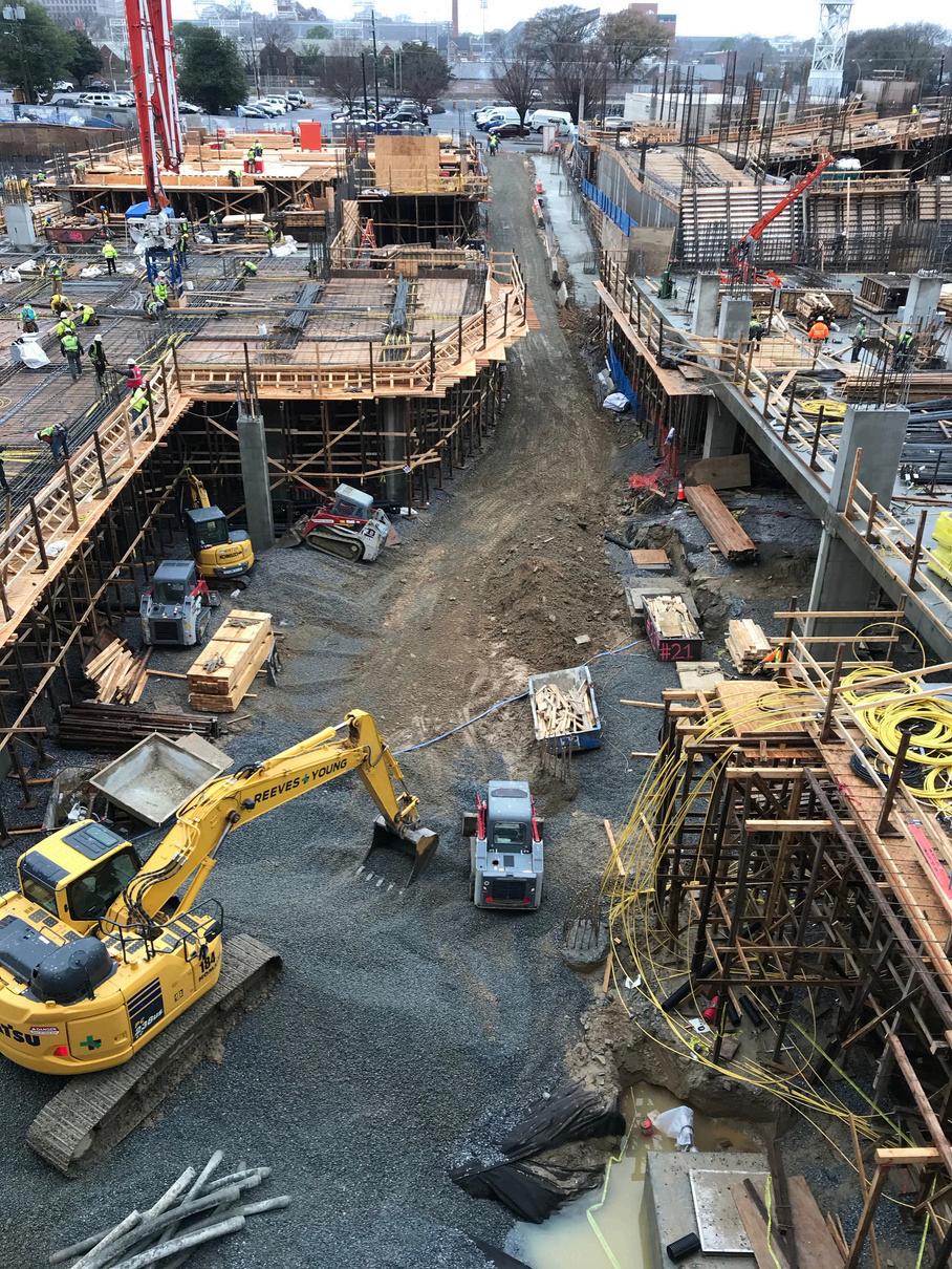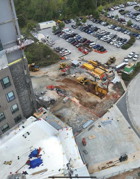 AccommodatingTruistParkpatronsaswellasthesurroundingbusinesses, thissix-story,140,000SFparkingdeckprovides393parkingspaces In additiontotheparkingdeck,ReevesYoungprovidedconstructionservices forthemixed-usedevelopment’sofficebuildingandperformancetheater inthesamearea.