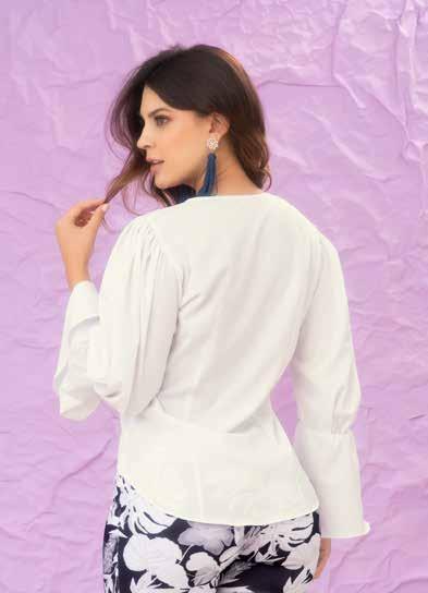 ref. 7265 BLUSA EN ALGODON SILUETA SEMI AJUSTADA BLANCO S-M-L-XL 67% ALGODON 29% POLIAMIDA 4%ELASTANO BLUSA Por Solo Por Solo ref. 7241 PANTALÓN EN CHALIS SILUETA AMPLIA UNICO S-M-L 100% VISCOSA PANTALON R 27