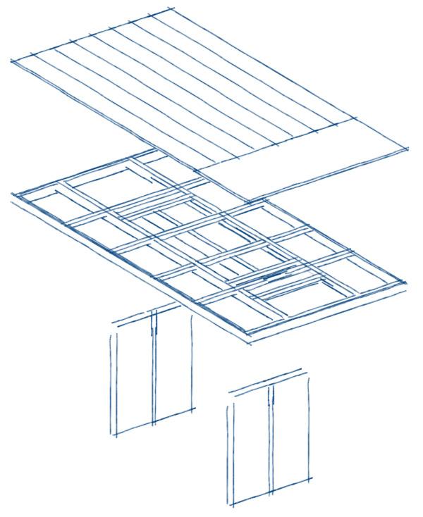 Once a part of a small architectural team, I was given the opportunity to design and build a 8 ft x 4 ft conference table for our new office space. To ensure ample legroom, two 6 ft steel angles reinforced the table top, allowing for additional overhang.