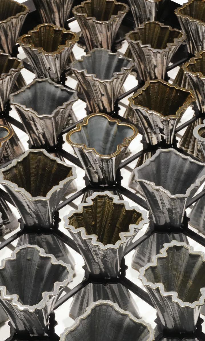 In this project, we reinterpreted Lorenzo Ghiberti’s renowned door patterns, transforming them into 3D through digital ceramic techniques. Extracting the detailed floral ornamentation, we created 49 unique cylindrical forms using a 3D ceramic plotter, each featuring a distinctive layered texture that breathes life into the classic design.