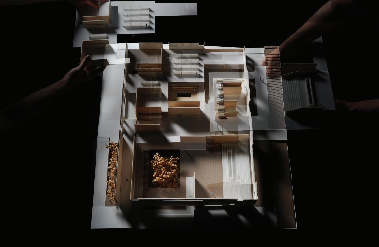 Located in St. Louis, MO, 5 Creek House is a renovation project transforming a former barn into a two-unit residence. Designed to embrace its sloped landscape, the project integrates flower planting along the downhill-facing porch, enhancing the connection between architecture and nature. My role involved designing and constructing an exhibition model for the clients, allowing for dynamic spatial exploration through modified components. This interactive approach provided a flexible visualization of the evolving design, bringing the transformation to life.