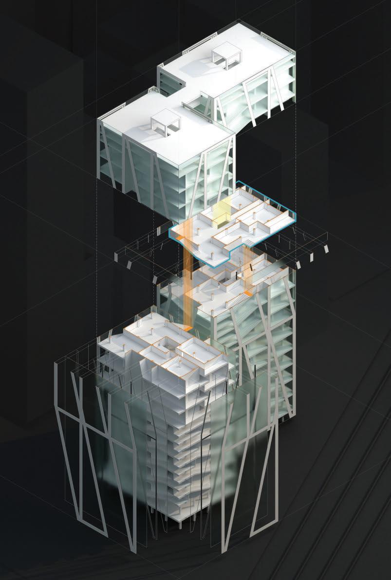 In the wake of Chicago’s transformative experience during the lockdown of 2021, the redesign of 860-880 N Lake Shore Dr Buildings emerges as a symbol of resilience, innovation, and elegance in the heart of the city. Inspired by the challenges faced during that period, our visionary redesign introduces a groundbreaking concept featuring external floating stairs that connect every two floors in addition to the central elevator and staircase, it serves as an alternative circulation path. Amidst the pandemic, masks became a barrier separating individuals. My design seeks to reflect this concept by dismantling the barriers of ceilings and exterior walls between distinct levels, fostering connection among them.