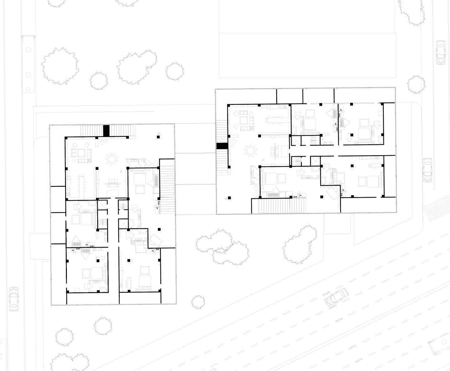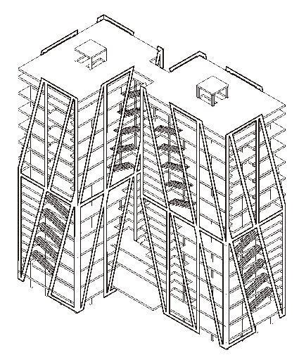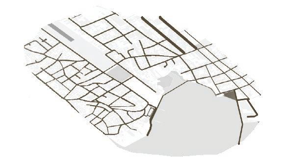 Derived from the location map of 860-880 Lakeshore Drive, the extracted roadways and structures form a concise line diagram model, this diagram model inspires an innovative, extruded facade design, showcasing an integrated interplay with the spatial dynamics of the site.