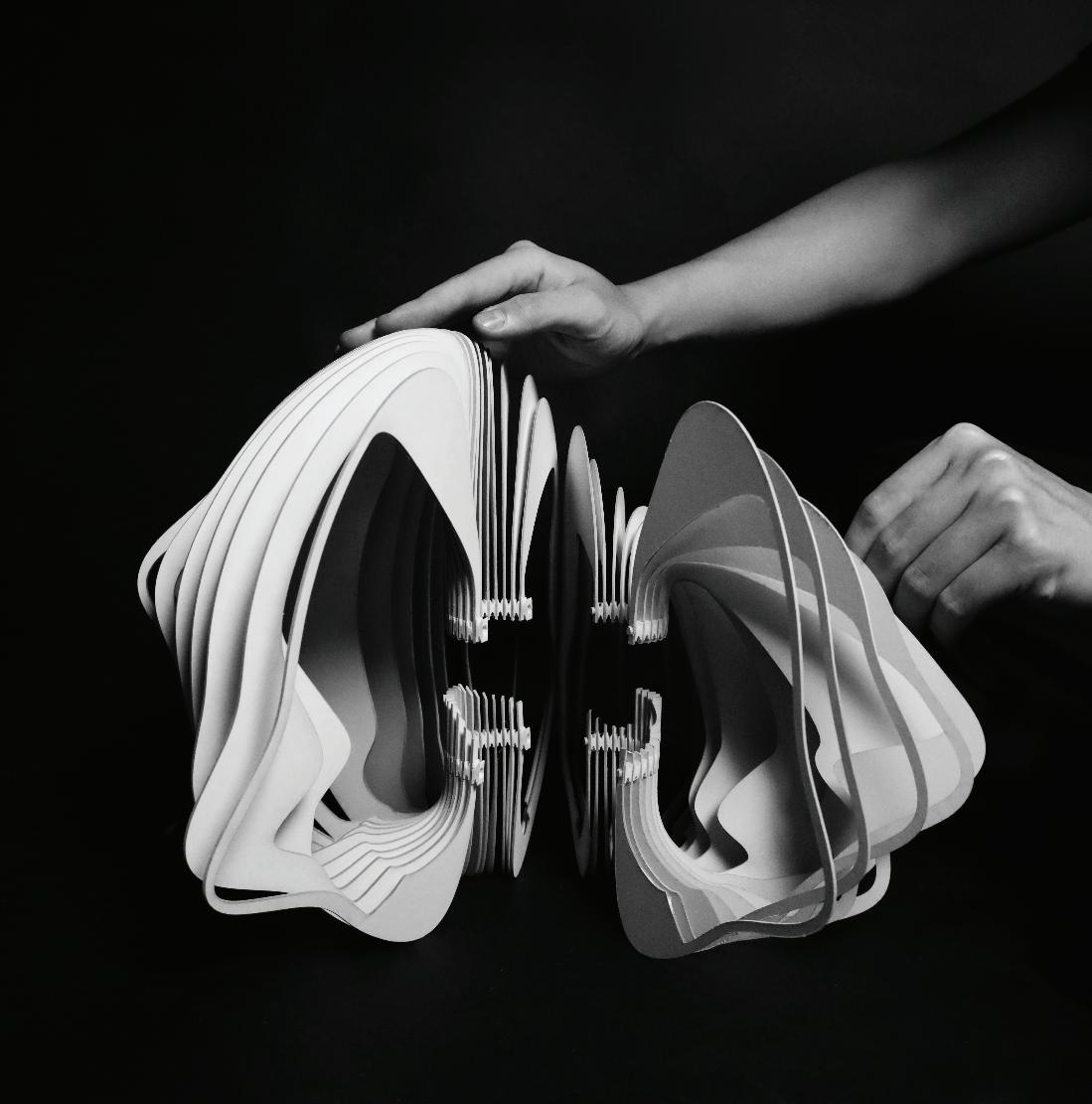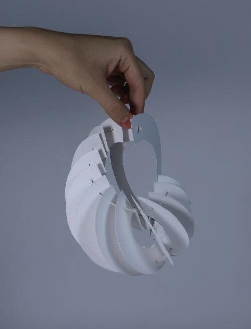 The project started from generating contructual digital model, then percisely crafted components with CNC, lasercutter, and 3D printer. spary painted delicately on the geometrical pattern in the design.
