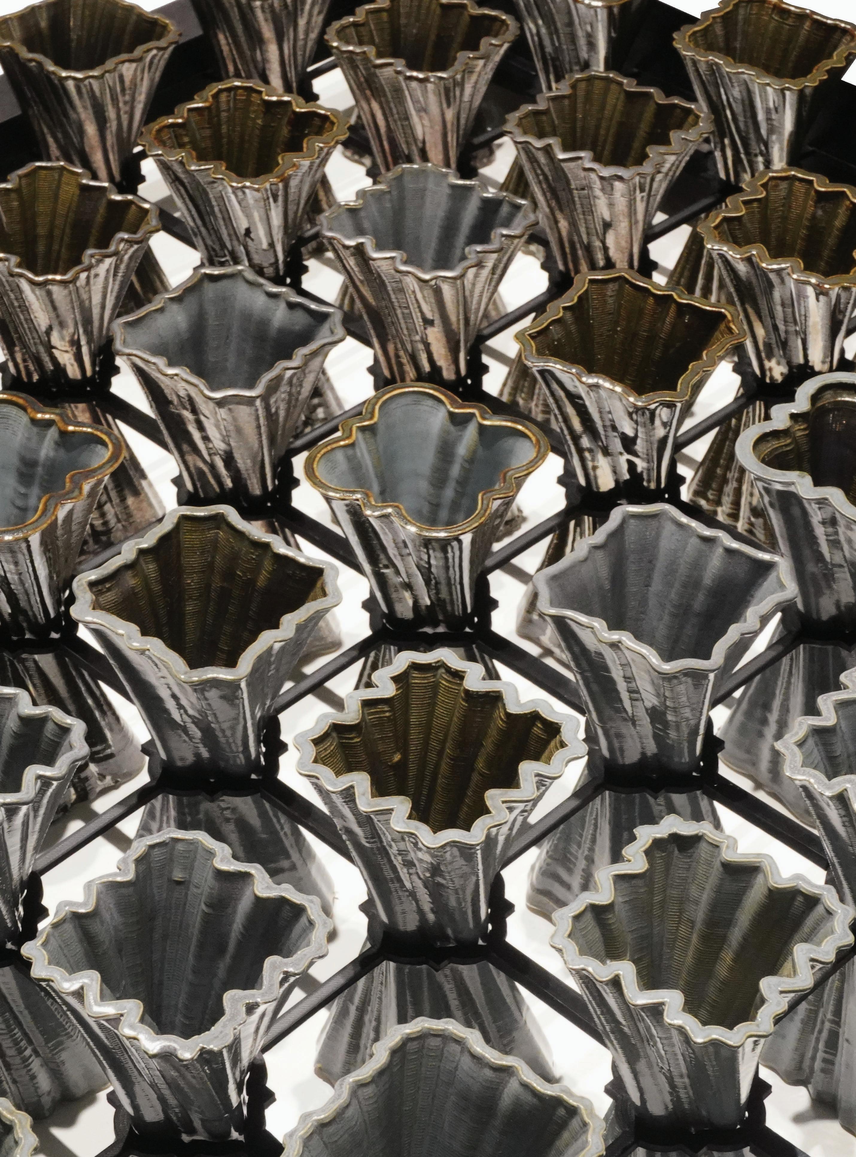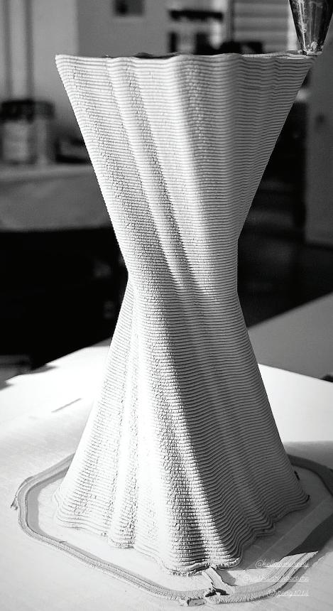 Inspired from Ghiberti’s ornamentation, the form was challenged to test the limit of how stable the clay could hold the texture on the ceramic 3D plotter. 01 02 03