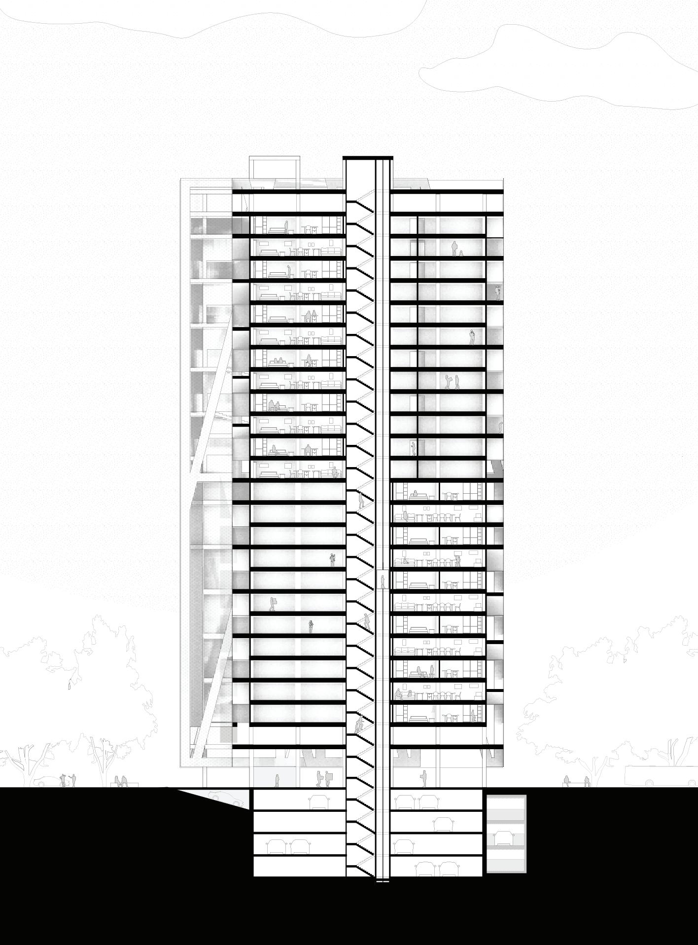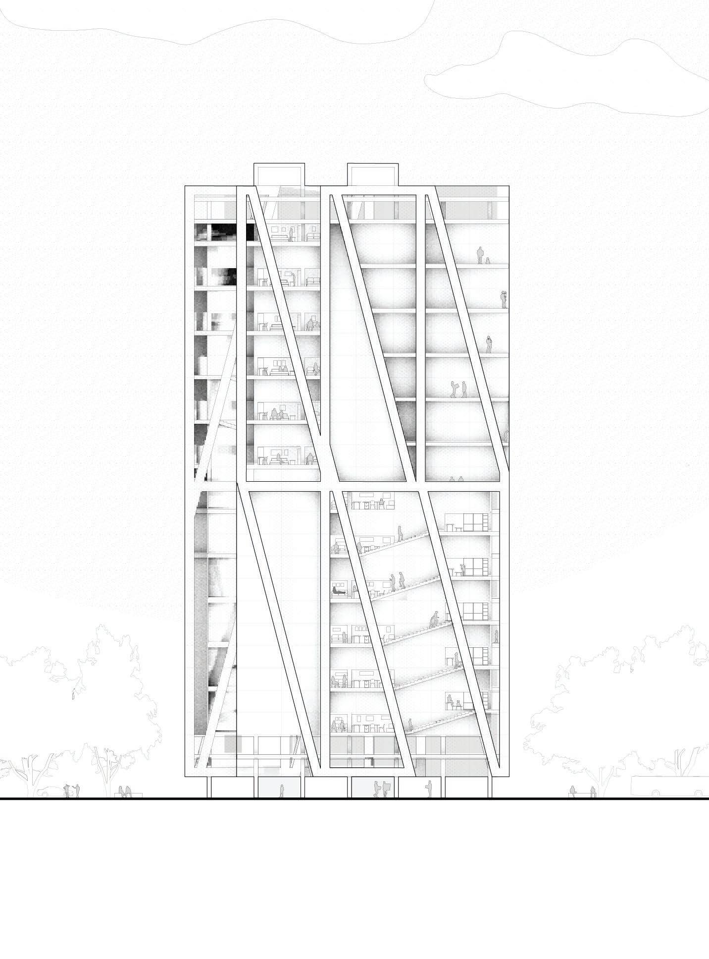 In the wake of Chicago’s transformative experience during the lockdown of 2021, the redesign of 860-880 N Lake Shore Dr Buildings emerges as a symbol of resilience, innovation, and elegance in the heart of the city. Inspired by the challenges faced during that period, our visionary redesign introduces a groundbreaking concept featuring external floating stairs that connect every two floors in addition to the central elevator and staircase, it serves as an alternative circulation path. Amidst the pandemic, masks became a barrier separating individuals. My design seeks to reflect this concept by dismantling the barriers of ceilings and exterior walls between distinct levels, fostering connection among them.