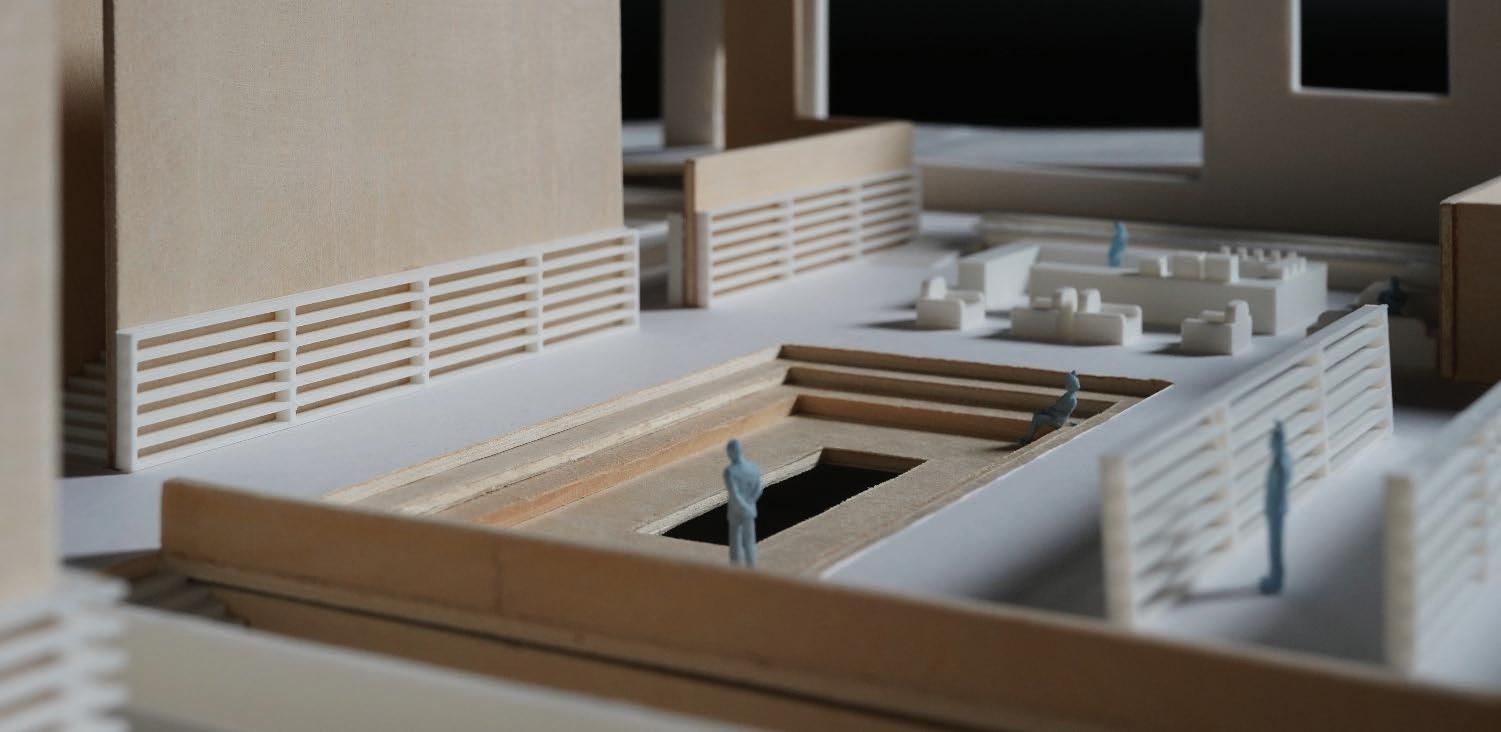 1”:16’ physical site / building model digital collage (museum board / chipboard / basswood)