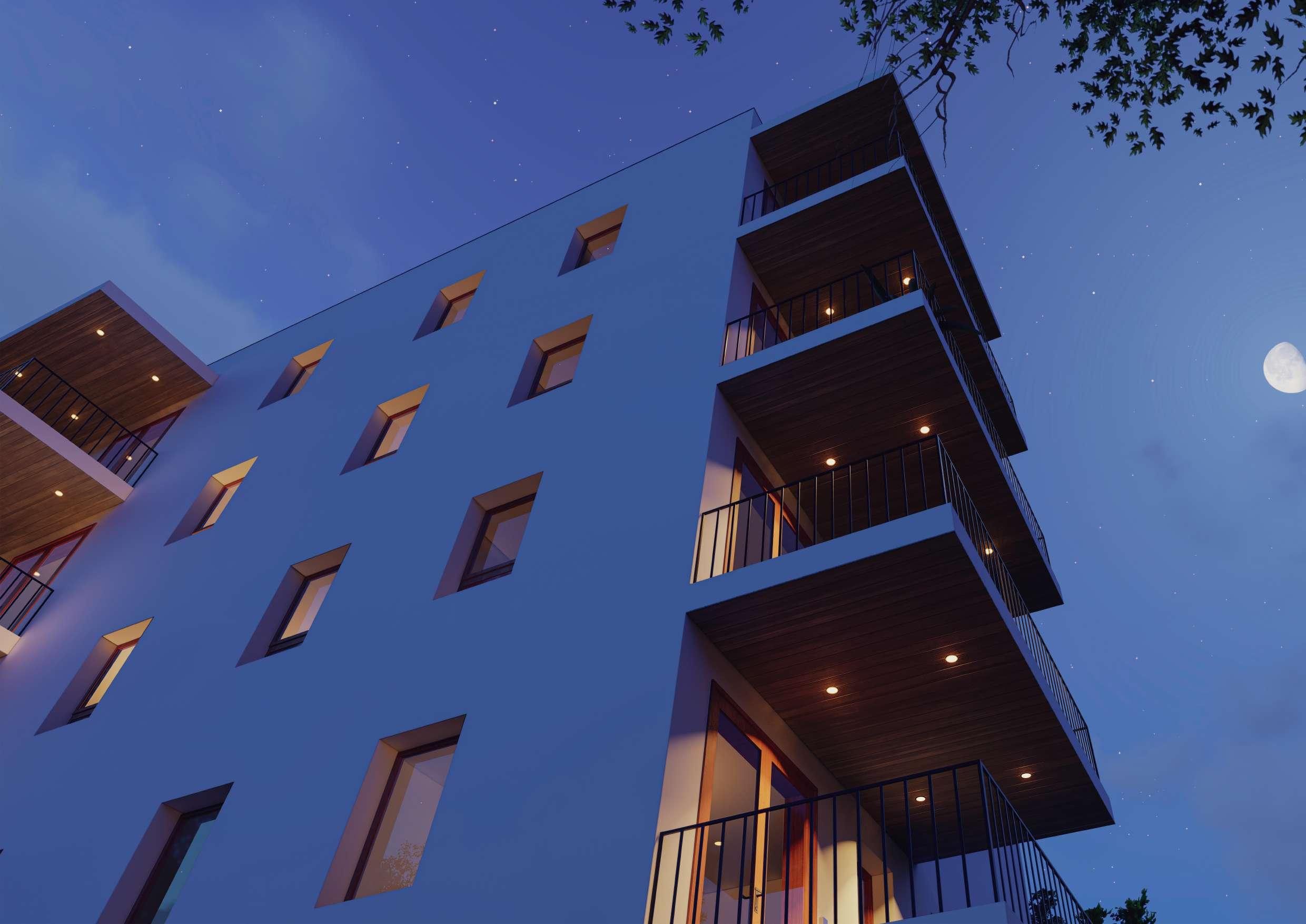Este edifício residencial conta com um apartamento por piso onde procura-se aproveitar o espaço para que seja proporcionado o melhor conforto possível para os habitantes Projectado para um espaço de 30x15m os apartamentos têm entre 105-109 m2