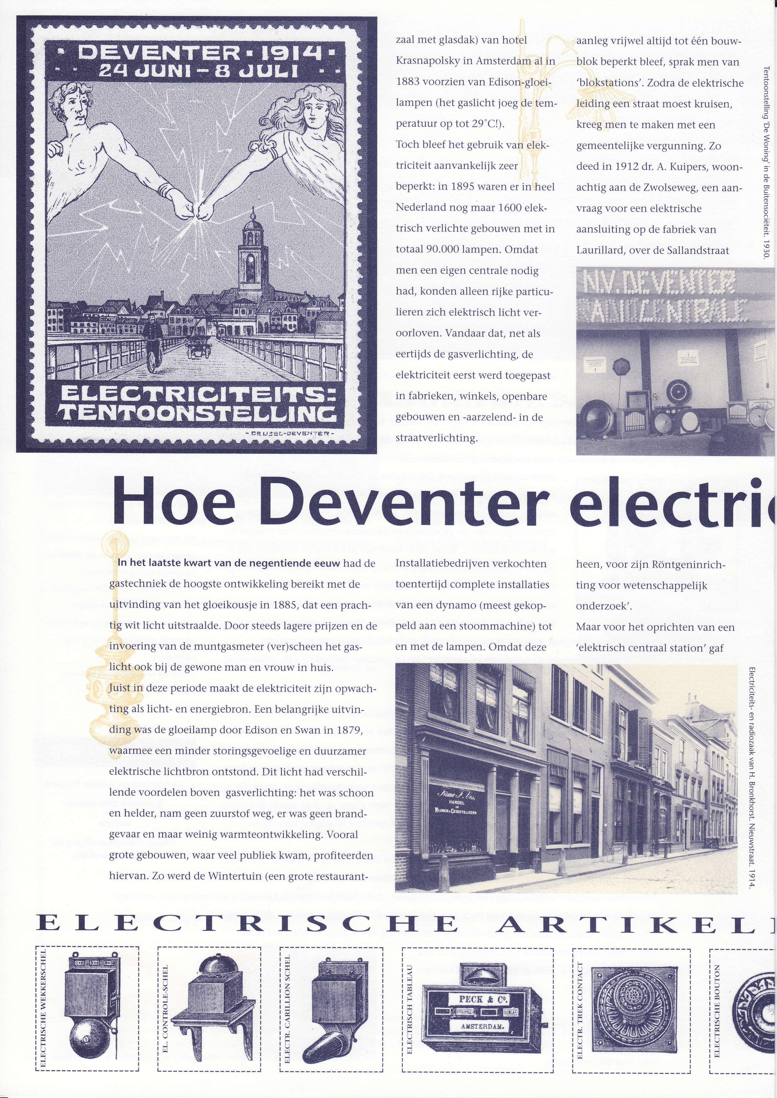 ElektÍiciteitstentoonstellingin, waaraande gemeente subsidiegeeft.In datzelfdejaarbesluitdegemeentede exploitatievan het distributiebedrijfin handen te gevenvan deN.V.IJsselcentrale,totdat het plaatseliike net eenbehoorliikeomvangheeft.