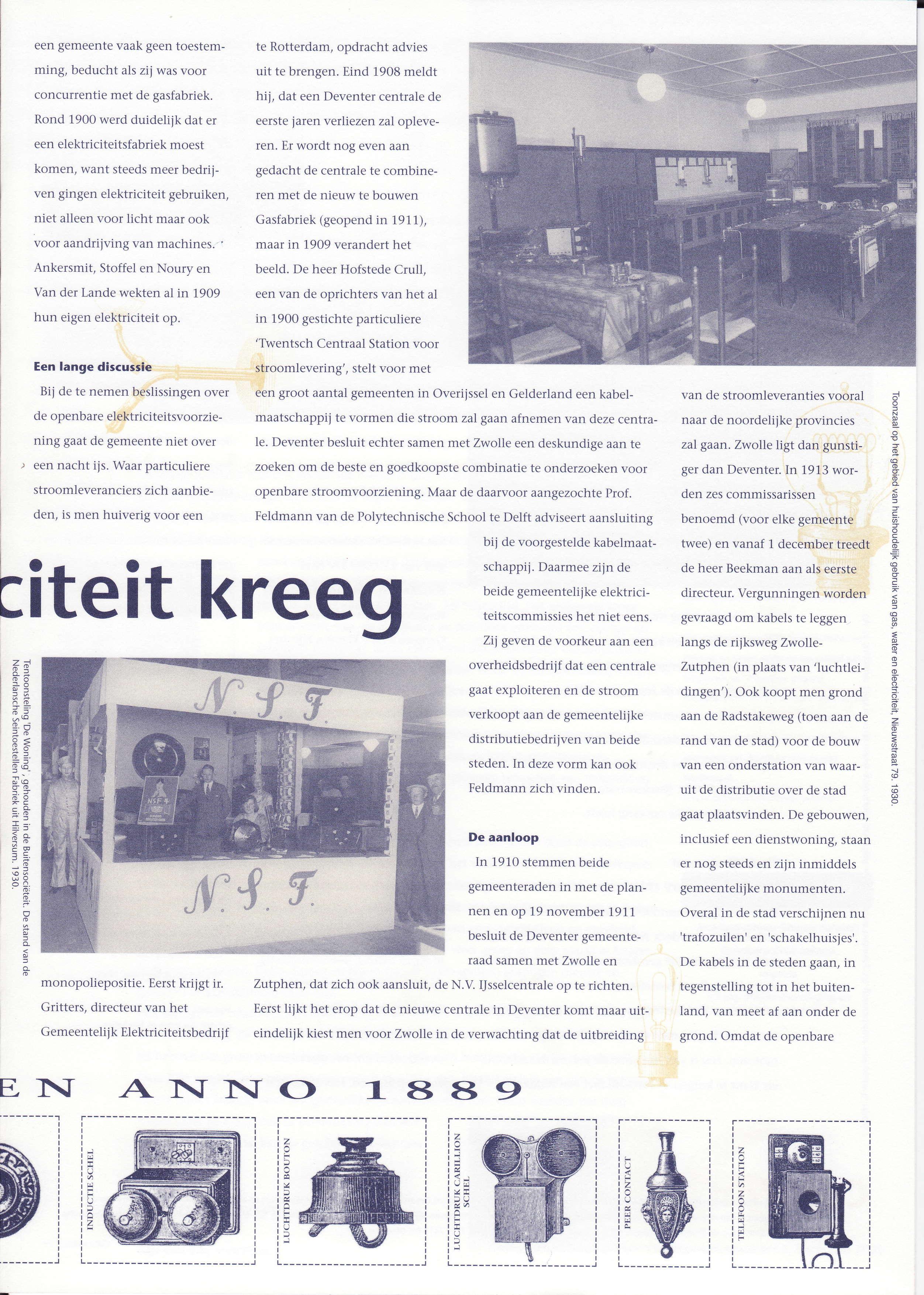 'Twentsch Centraal Station voor stroomlevering',steltvoor met eengroot aantalgemeentenin Overilsselen Gelderiandeenkabelmaatschappij te vormen die stroom zal gaanafnemen van dezecentrale. Deventerbesluitechtersamenmet Zwolle eendeskundigeaante zoekenom debesteen goedkoopstecombinatiete onderzoekenvoor openbarestroomvoorziening.Maarde daarvooraangezochteprof.