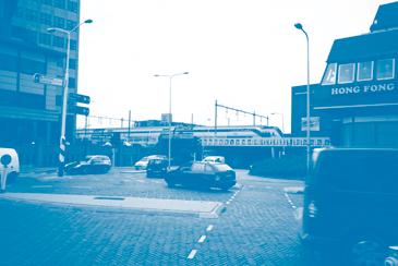 zeer druk. Er is daarom al een voetgangersbrug gebouwd, die ook diende voor overstappende reizigers (van station S.S. naar HIJSM en viceversa). Vanaf de Veenweg tot en met de Boxbergerweg wordt de spoorlijn enkele meters omhoog gebracht. De rijweg onder de vijf viaducten graaft men uit, zodat er onder de nieuwe viaducten een doorrijhoogte ontstaat van 3m86.
