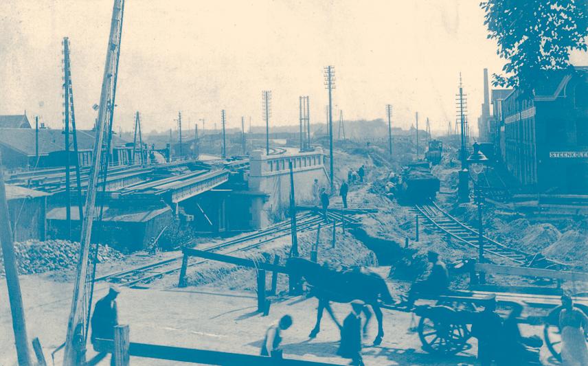 Al deze werken beginnen in 1914, maar lopen door de Eerste Wereldoorlog vertraging op. Maar in 1920 rijden de treinen over het nieuwe spoor ‘hoog boven de straten’. Tenslotte komt pas het jaar daarop het nieuwe station in gebruik.