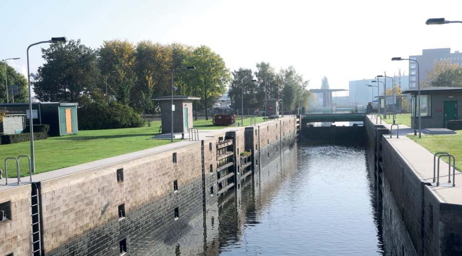 ‘hellende beloopen’ (taluds), waardoor een schip bij laag water een heel eind van de wal af ligt. Nog een belemmering: voor de hefbrug in de buitenhaven (Zutphenseweg) wordt bij hoogwater een vloeddeur geplaatst, waardoor de scheepvaart stil ligt. Dit bezwaar vervalt als de sluis, zoals voorgesteld, in de voorhaven komt.