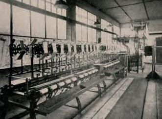 Rechts: vlechtmachines (voor directoire- en koordelastiek).