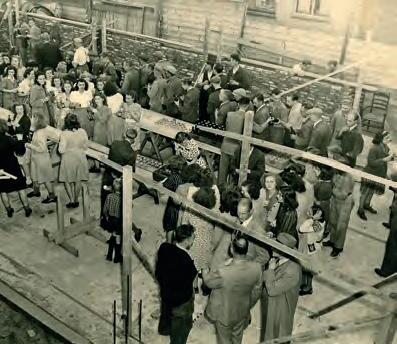 Op de voorgrond v.l.n.r.: een machinebankwerker, directeur Louis Fortuin en burgemeester Bloemers van Deventer
