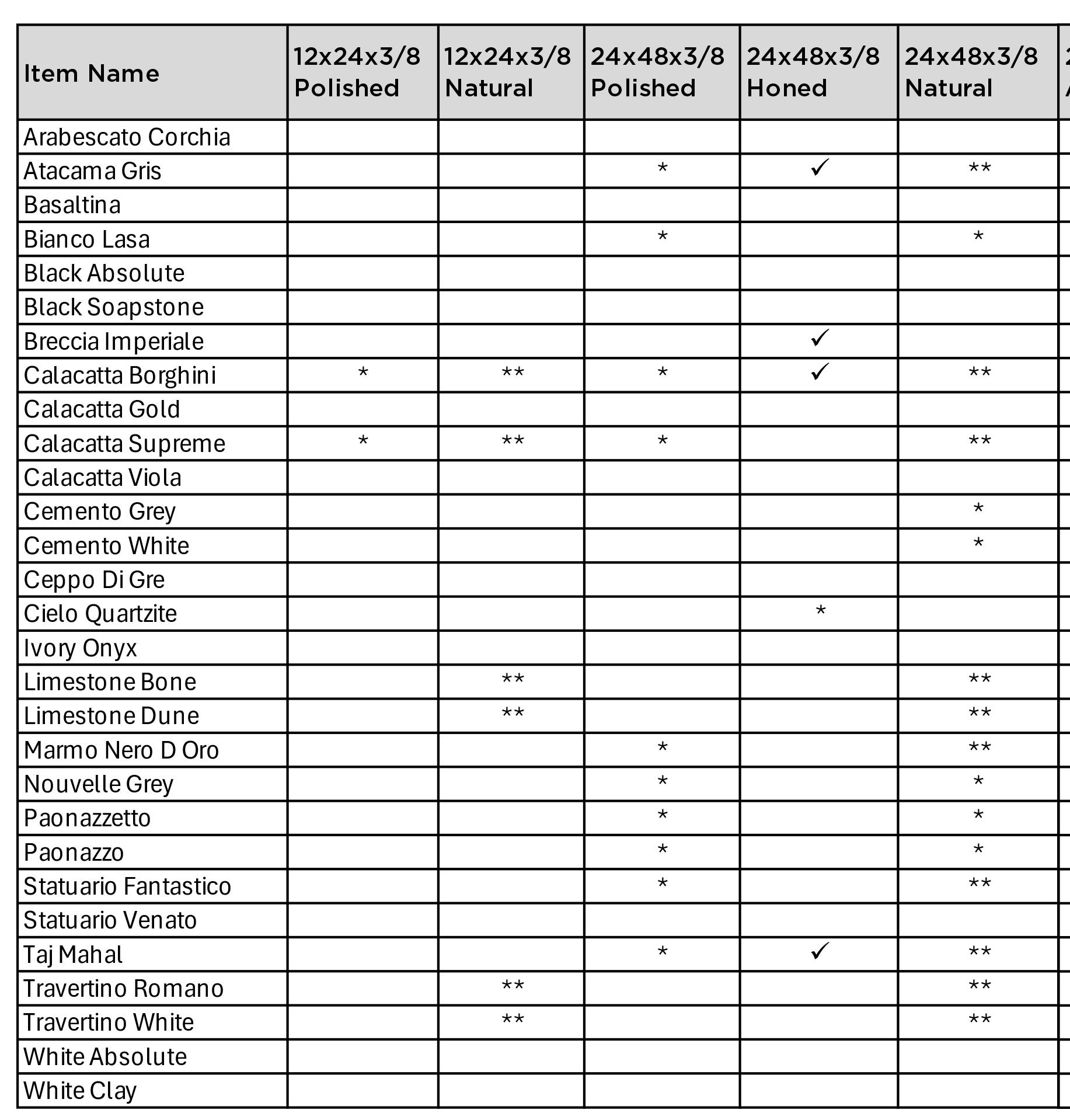 24” x 48” Honed