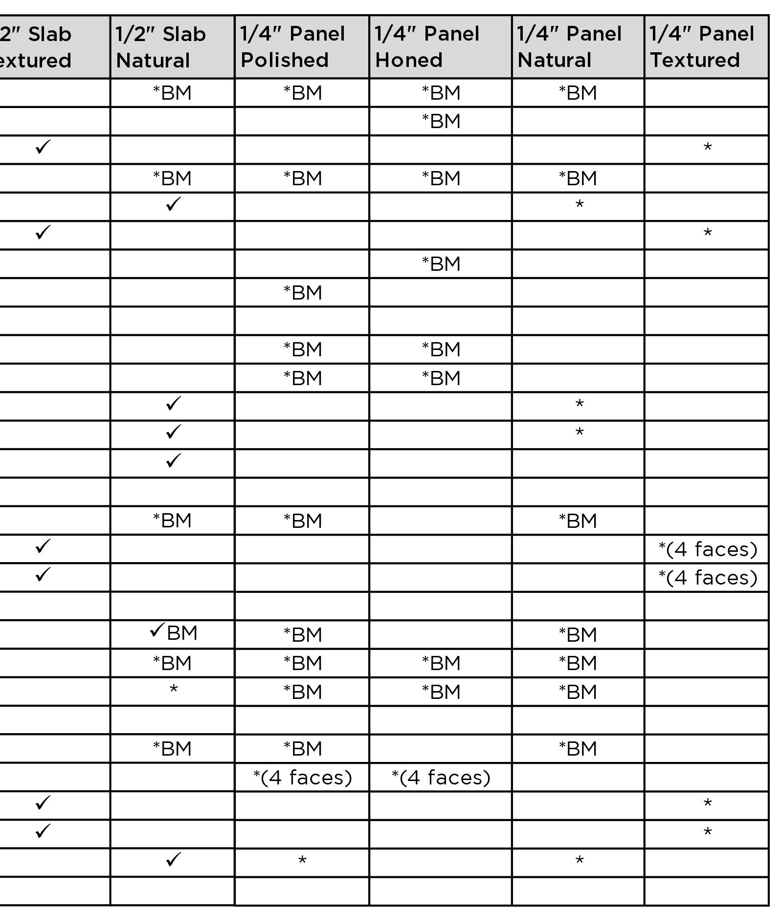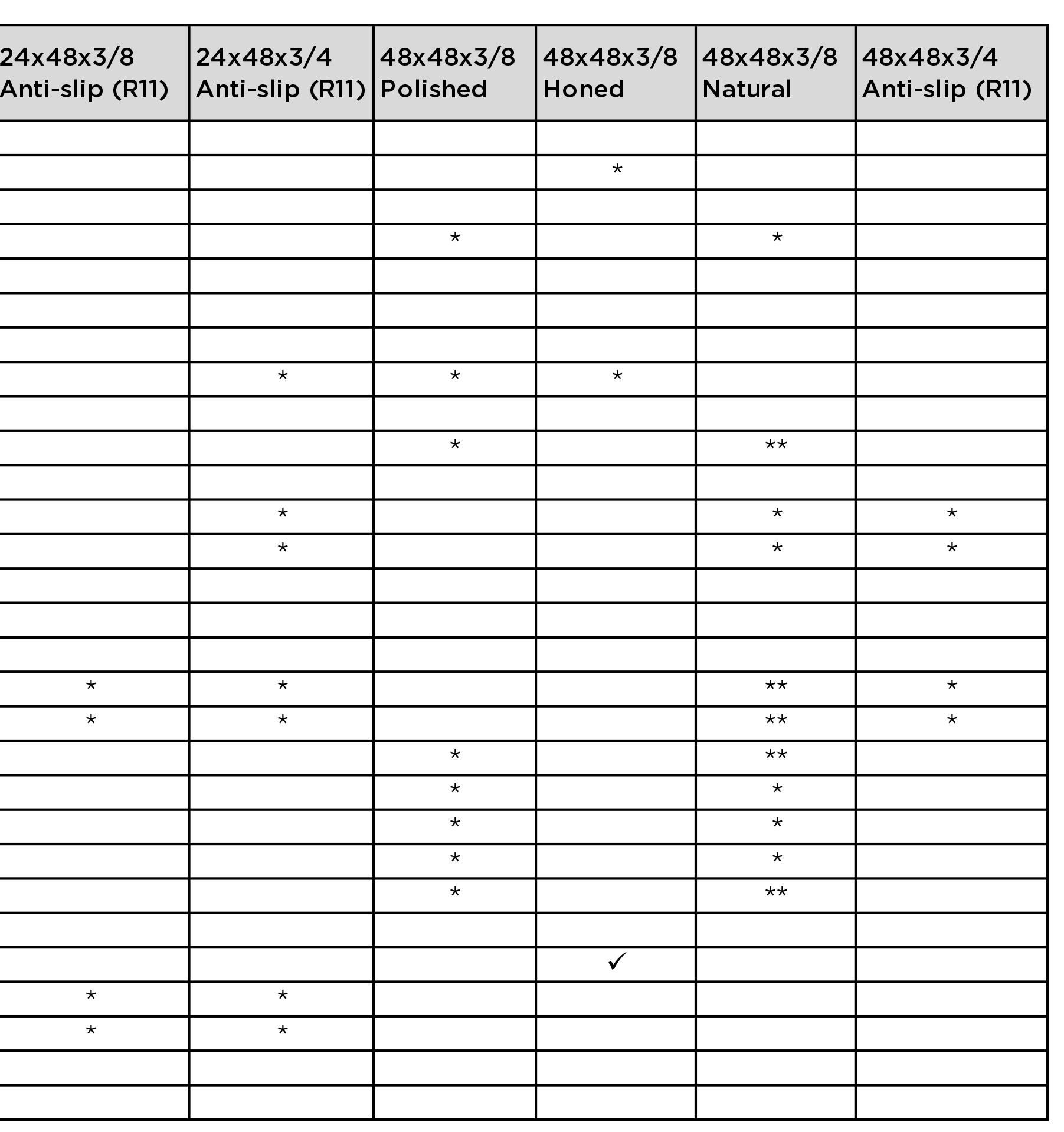 AVAILABLE FINISHES 1/2” Honed