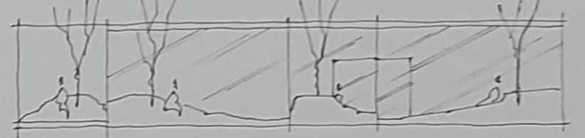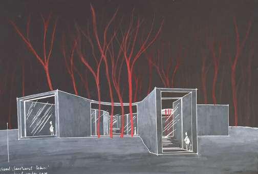 pavilion. Pavilionul ‘’Sanc tuarul Pădurii’’ devine motivul pentru care trecătorii se opresc și conștientizează existenţa pădurii. Copacii devin motivul central, iar toate gesturile făcu te în dezvoltarea proiec tului sunt motivate exclusiv de valorificarea lor. Decupajele din zonele de tensiune atrag atenţia asupra detaliilor de pe scoar ţă copacilor. Centrul pavilionului reprezintă inima pădurii și un totem al protejării purităţii acesteia.