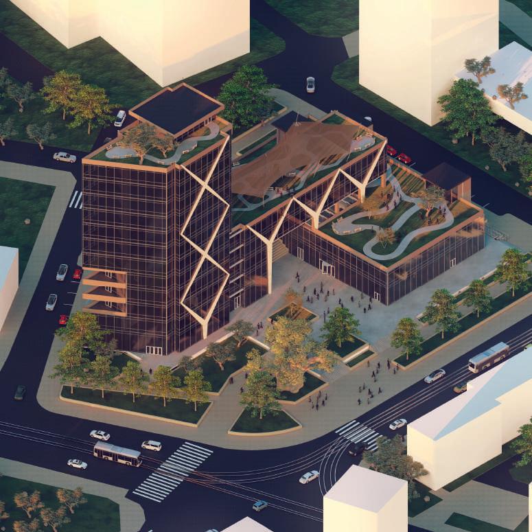Proiectul abordează o rezolvare separată a spaţiilor publice și a celor de birouri, unite prin atriumul central ce subliniaza o comunicare vizuala si totodaa un pasaj pietonal impresionant, cu atrium și piesa centrala sculpturala. Acest proiect a reprezentat primul proiect din facultate de asa o mare amploare si l-am dezvoltat impreuna cu colegul meu pe parcursul a 2 luni.