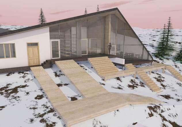 În cadrul acestei schiţe a trebuit să proiec tăm o staţie de refugiu montan, care să includă spaţiu comercial, punc t medical, grupuri sanitare și un bistro. Chiar dacă tema nu lăsa loc de multă creativitate pe par tea de funcţional, am dotit să prezint prin conceptul meu grandoarea munţilor și vâr furile înzăpezite, astfel dezvoltând un acoperiș în șase ape pentru toată clădirea.