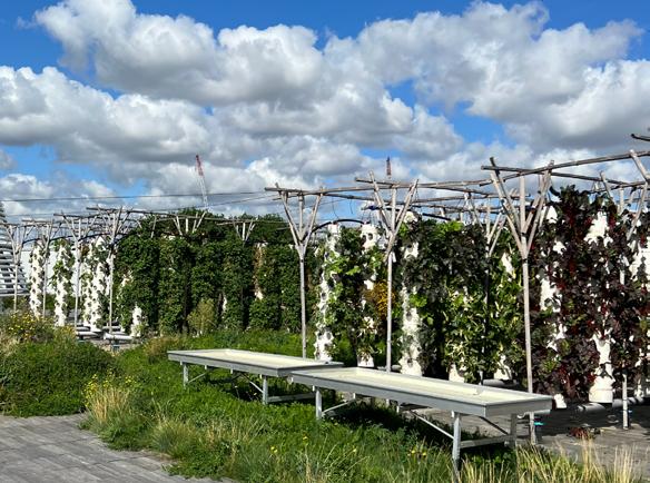 The creation and vertical integration of food production systems helps to harbor spaces for rooftop beehives, culinary classes, bars, and outdoor dining.