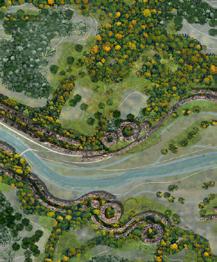 Inspired by the natural flow of Rush Creek, phased ecological regeneration processes encourage the river to rebuild itself; choosing which direction previals to create cascading habitats and corridors for native keystone species.