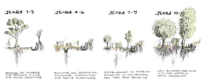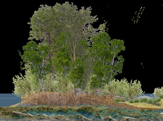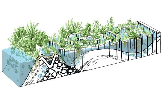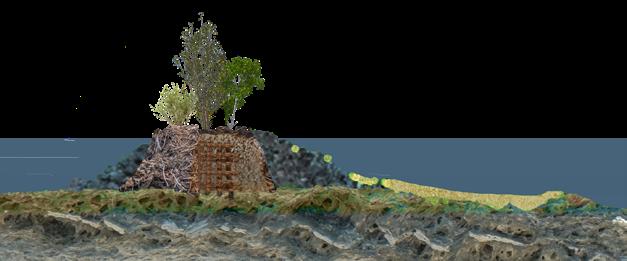 As the analogue structures begin to fully decay, these ecological islands eventually become riverbanks, sandbars, and alluvial floodplains to provide mediums for native reintroductions.ww