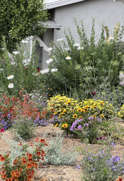 Rotating blooms, filled with jazzy colors, while maintaining rotating blooms and pet friendly plantings were necessary for this Marina Del Rey new build. This bohemian home is complimented by purple, pink, orange, and yellow blooms; inspired by California’s wildflower blooms of lupine, poppies.