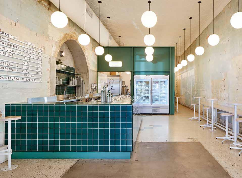 THE CAFE + BAKERY FLOOR HAS AN EXPOSED CONCRETE SLAB FOUNDATION THAT WORKS AS A THERMAL MASS. THERMAL MATERIALS USED FOR THE WALLS ARE CONCRETE AND CERAMIC TILES.