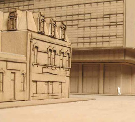 The selected project site was located in a lot across from the TIFF Bell Lightbox designed by KPMB architects in Toronto, Ontario. Along with a small group of students our role was to document and model the site and its surrounding buildings in a withstanding manner for the entire frst year class to use during their fnal critiques. Based of of on-site photographs and available resources we created s 3D model, drafted Auto CAD cut sheet fles, laser cut, and assembled the model over a matter of weeks. The model was designed with a void in place of the selected site for student to place their own model within the surrounding context.