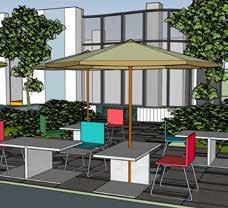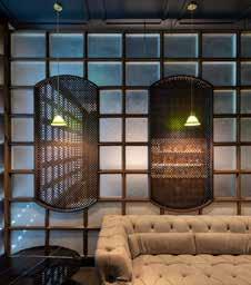 This space is an easily transformable gallery on the main foor with rolling display walls that can be utilized or stored away dependent on event requirements. The second foor contains a small kitchen and bar for an intimate dining experience with two private rooms a half level above the lounge. My main focus was to tie in the interior design concepts to the exterior of the building through landscape details. The main path incorporates interior materials between concrete tiles with an outdoor dining area surrounded by greenery for an escape from the busy streets of Shanghai. This exterior space connects the dining garden of M. ounge to an existing public courtyard while still maintaining an element of privacy.