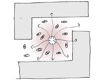 Around the core, allocated floor spaces balance encroachment risk with social need. Positioned strategically, they foster floor-specific community engagement, offering residents a sense of ownership .