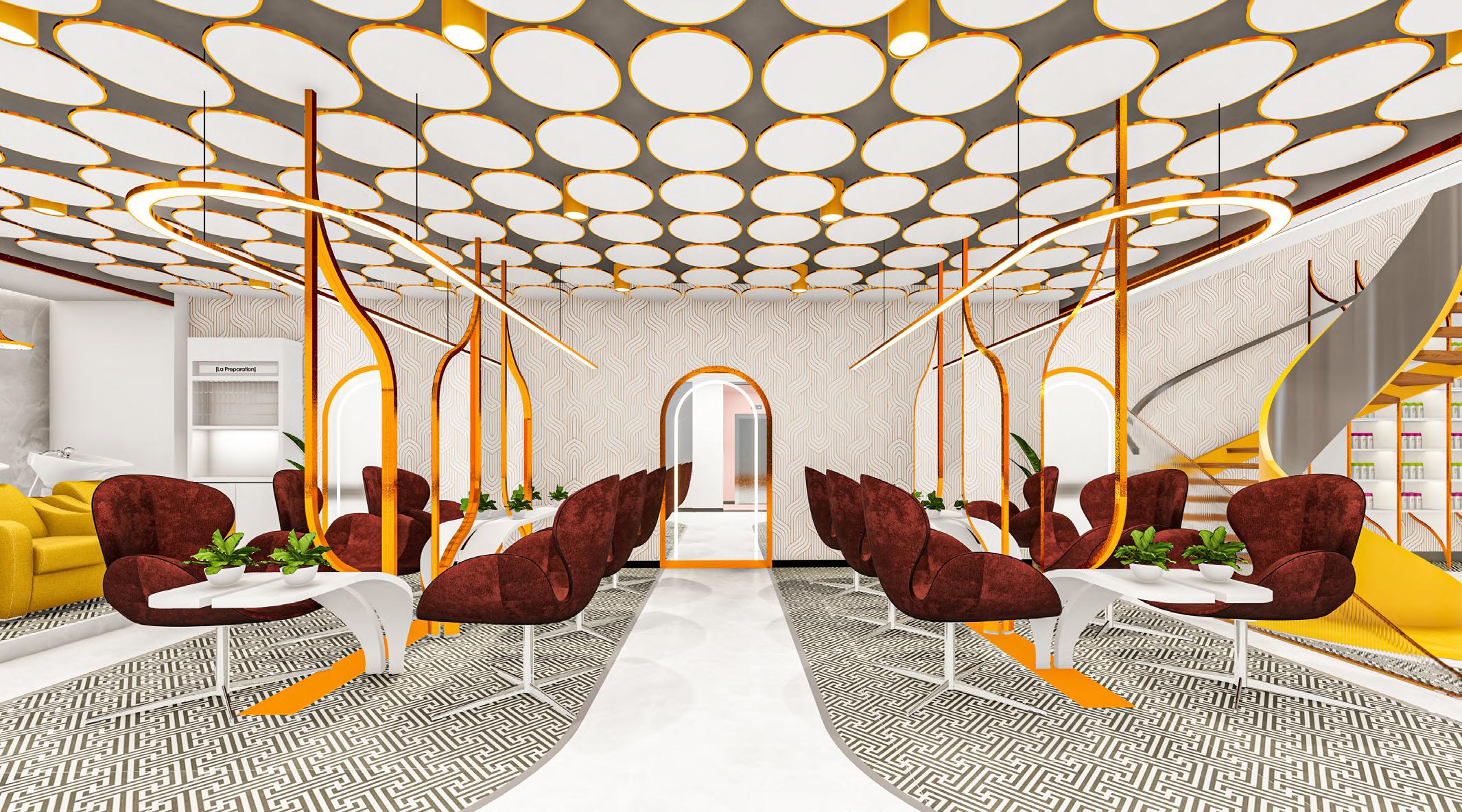 This luxurious salon was designed as a part of monsoon group. This is their biggest salon building located in amritsar. I got familiar with the general material palette of salons, their space planning. inferior layout etc.