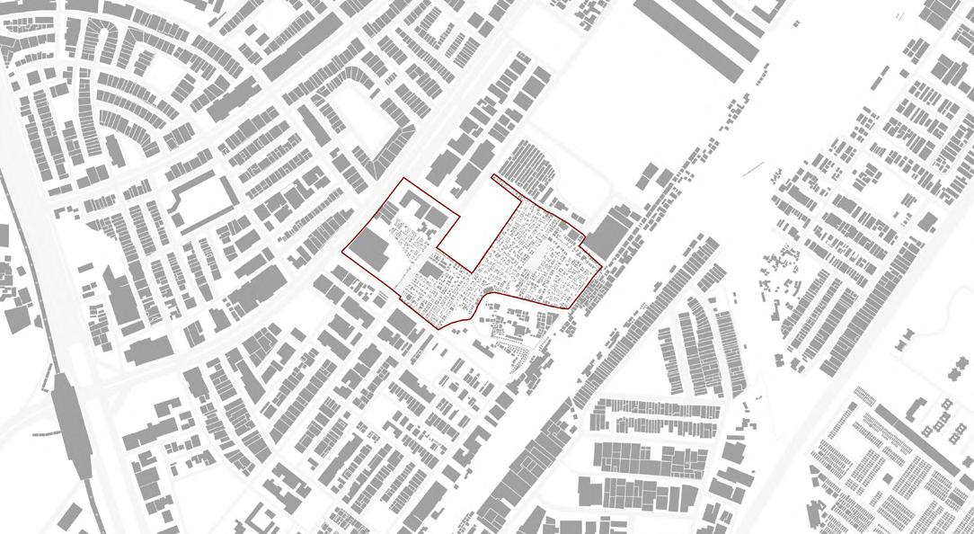 The site is enclosed by a collector road, which faces challenges such as informal parking and congestion attributed to the prevalent commercial land use.