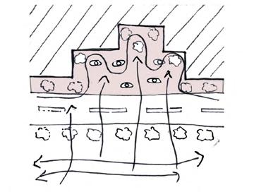 Utilising stilts as multipurpose spaces. Introducing qualities like semi-open spaces, double height, spacious, well-lit, in vicinity to lively landscape