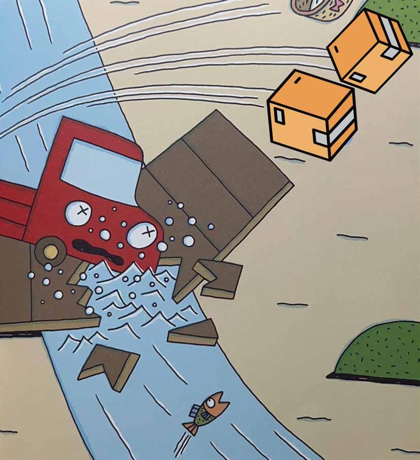 狸貓叔叔就說:「小紅把這個搖籃送到兔子先生家吧! 兔子先生家裡有小寶寶誕生了, 還有這兩個箱子也麻煩你送去。」
