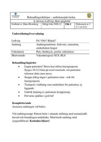 Behandlingsriktlinjer – ambulanssjukvården A-Airway-Luftväg Akut epiglottit Godkänt av Hans Blomberg