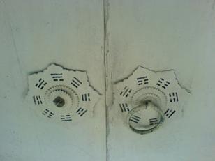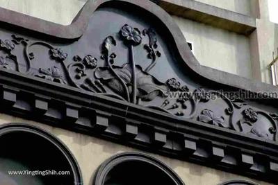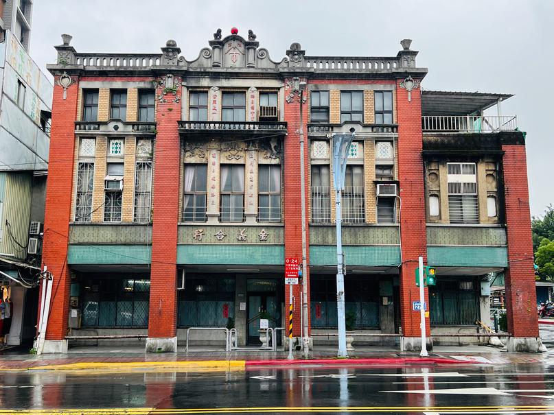 圖樣象徵做⽣意,圓頂⽡⽚實為⿊⽡,當時表⾯塗⾦屬效果的材質,⾵格 華貴,在臺灣街屋中⾮常少⾒。⼀般街屋臨街⾯都不寬,但建成商⾏的臨