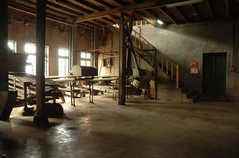 製茶⼯廠內保留之搖頭氣窗