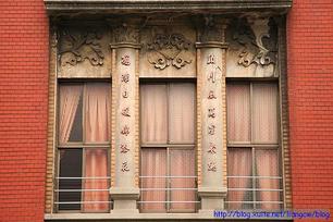 建成商⾏建築有翼塔,雙柱式三開間格局相當氣派雄偉;串珠、算盤珠等