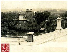 昔⽇前後皆具庭院 從中⼭橋眺望圓⼭別館之⽼照⽚