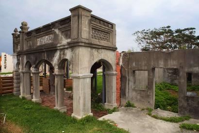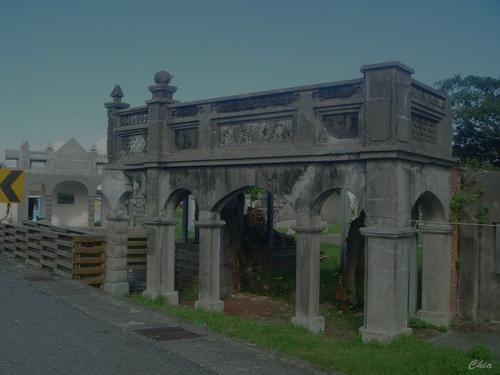 建築樣式為「巴洛克」式的三拱式牌樓以及磚拱騎樓式的「亭仔 腳」,均以⽯材建造。